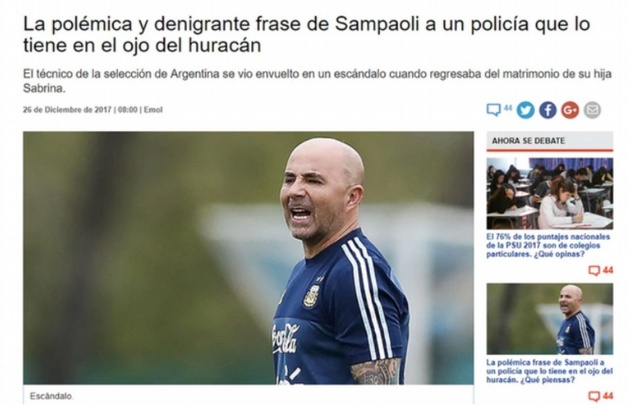 La pelea de Sampaoli con un policía en los diarios el mundo