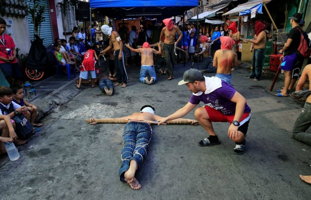 Estas escenas son parte de la Semana Santa en Filipinas, donde algunos creyentes buscan la redención experimentando en su cuerpo los tormentos que sufrió Jesucristo en el Calvario según el relato bíblico.