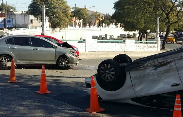 Un automóvil Volkswagen Suran de color blanco fue embestido por un Honda City en la intersección de las calles Marcelo T. de Alvear y Richardson de la ciudad de Córdoba y se dio vuelta.
