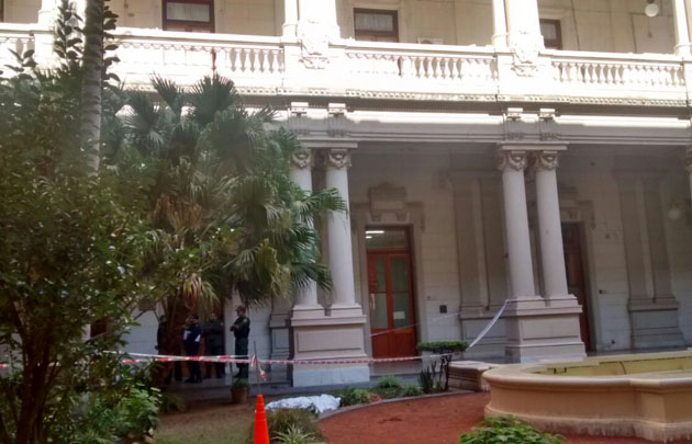 El episodio se registró esta tarde y tuvo como protagonista a un ordenanza, de 29 años, identificado como Exequiel Borgna, quien se arrojó desde el segundo piso del edificio gubernamental.