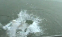 En el video quedó registrado cuando Sarah Brame se llevó un gran susto por un tiburón que apareció de golpe y le arrebató el pescado que estaba retirando con su caña.