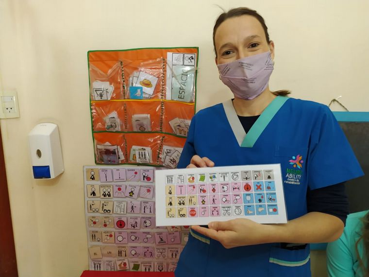 “Los pictogramas son imágenes que representan una palabra y se pueden usar como un apoyo a la comunicación. Pueden ser un complemento porque tiene algunas palabras y de este modo la persona puede hacerse entender. Es una alternativa a su forma de comunicarse”, explicó.