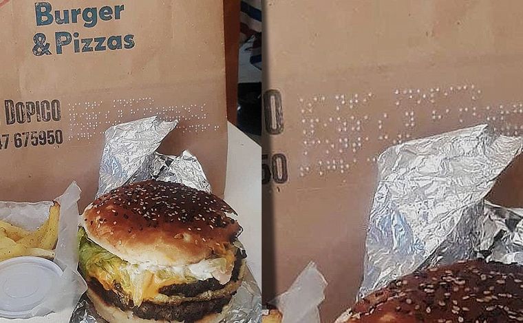 Trabaja con pizzas “hot or fresh”, además de hamburguesas y sándwiches de milanesas y quiso que las personas ciegas puedan leer el contenido de sus pedidos.