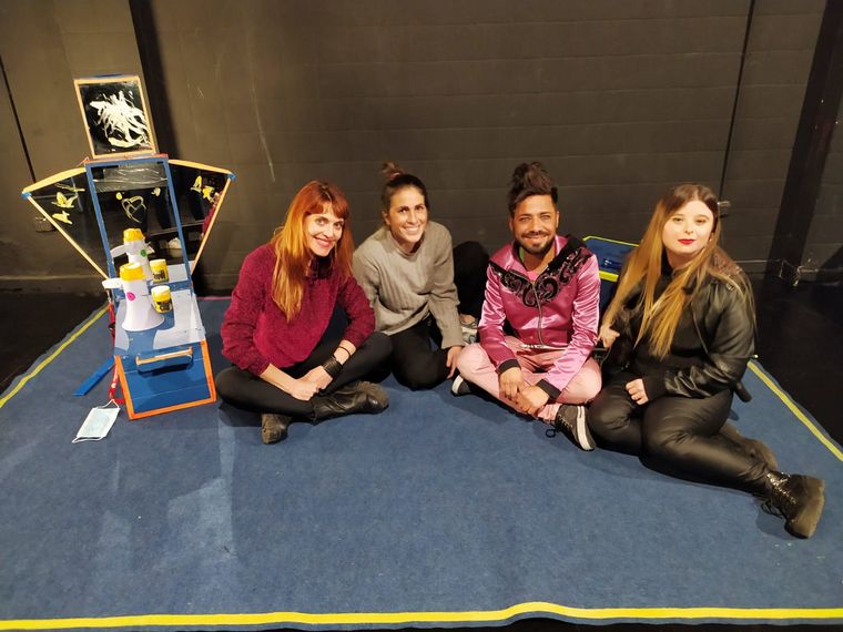 Flavia Irós, Marxela Etchichury directora de la obra, Ariel y Malena Pozzobon.