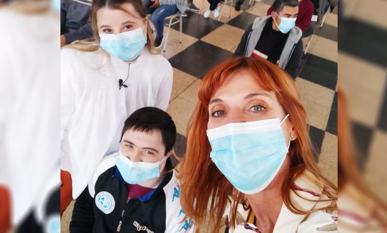 FOTO: Flavia Irós, Malena Pozzobon y Joaquín, un joven que consiguió su vacuna