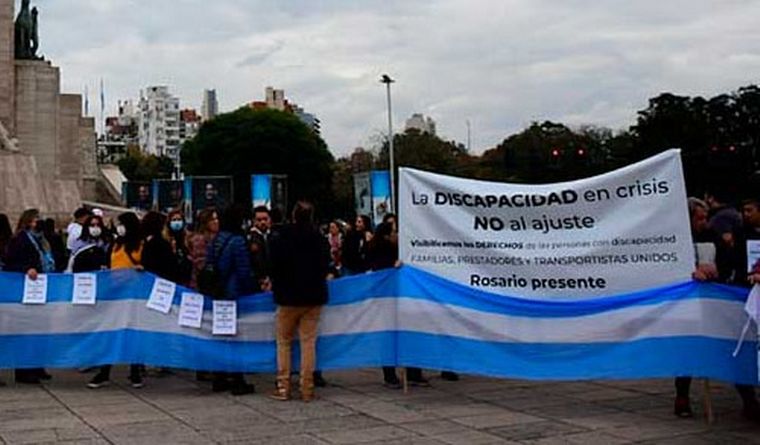 En el marco de una protesta nacional, prestadores de servicios a personas con discapacidad se manifestaron este martes en el Monumento a la Bandera y otros puntos del país, tras lo cual fueron recibidos en Casa Rosada, desde donde se comprometieron a “dar solución” a sus pedidos.