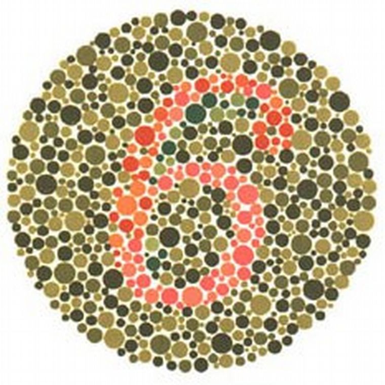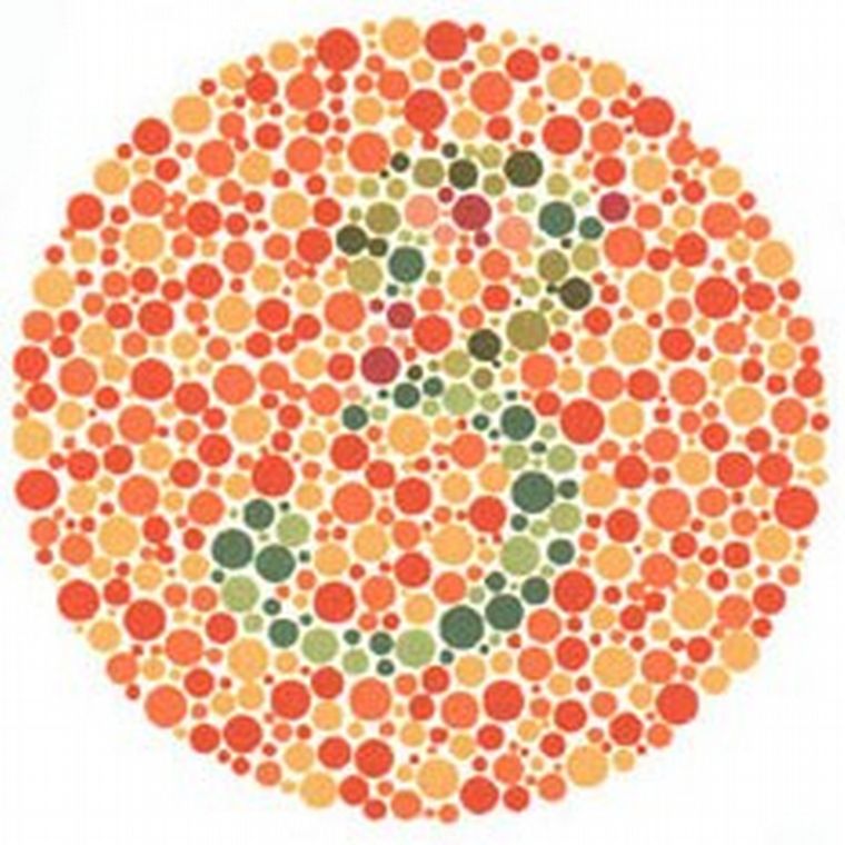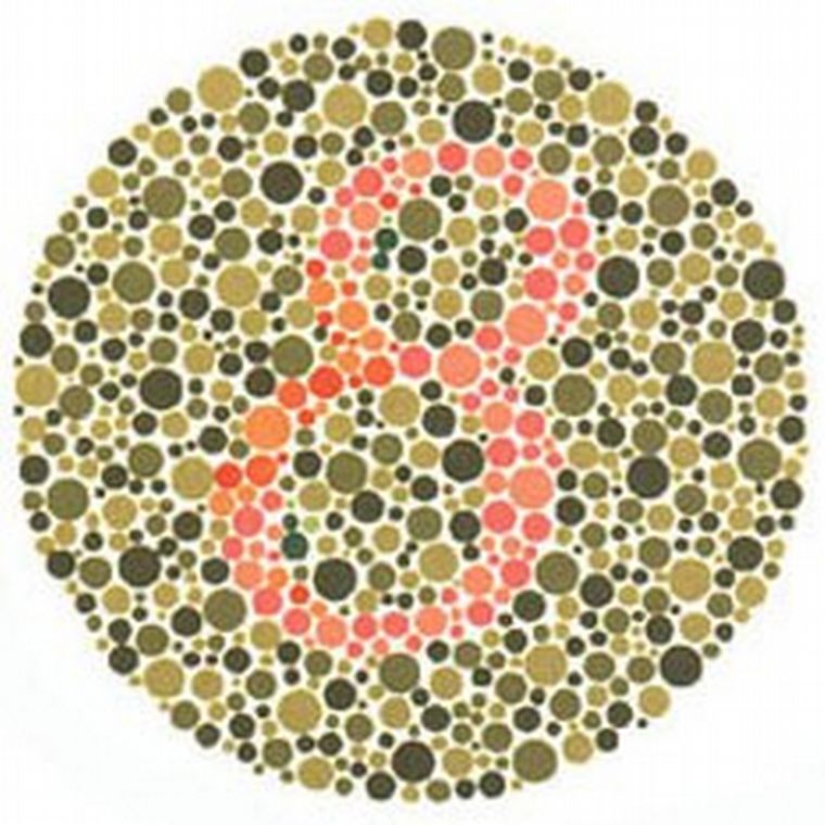 1. Las personas sin daltonismo leen un 8 y las que tienen alguna deficiencia daltónicas leen un 3. Los casos de ceguera total cromática no ven ningún número.