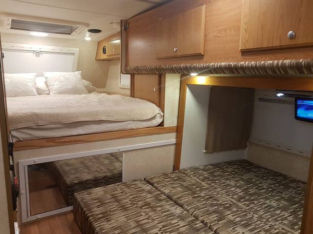 Cada uno de estos vehículos cuenta con varios habitáculos en los que se disponen camas de dos plaza y de una, cocina, baño, etc.