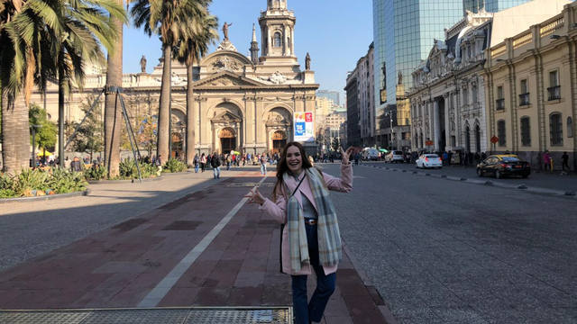 Agustina Vivanco, la enviada especial de Cadena 3 recorrió el Cerro Santa Lucía, visitó un café con pierna y recorrió las calles de la capital chilena.
