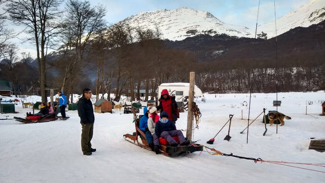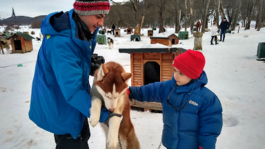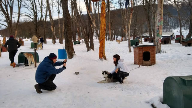 Siberianos de Fuego es un lugar en el Valle de Las Cotorras a 25 kilómetros de Ushuaia, en Tierra del Fuego que ofrece la experiencia de dar un paseo en trineo tirado por perros.