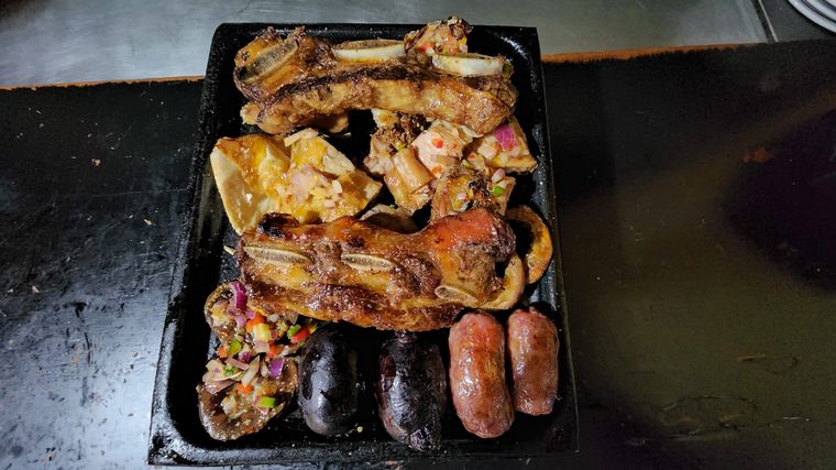 Uno de nuestros platos principales es parrillada para dos personas, que cuesta $ 4.000. El chivito sale $ 2.200 por porción, pero para una pareja hacemos $ 1.800 cada uno
