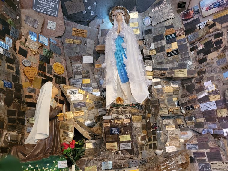 Además, explicó que la devoción a la Virgen nació cuando un grupo de personas de la zona salían a caminar y tomar unos mates al cerro Bonete. En una de esas salidas, alguien dijo: "¿Qué tal si además de tomar mates también rezamos el rosario?". A eso se sumó que un día llevaron una imagen de la Virgen, sin saber que era la de Lourdes. Hicieron un hueco y allí la colocaron. De ahí el nombre de Virgen del Hueco.