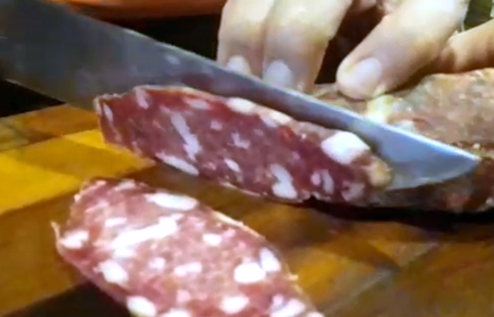 Matías Arrieta, el enviado especial de Cadena 3 a las sierras de Córdoba, aprendió con un experto de Colonia Caroya a cortar el salame como un profesional.