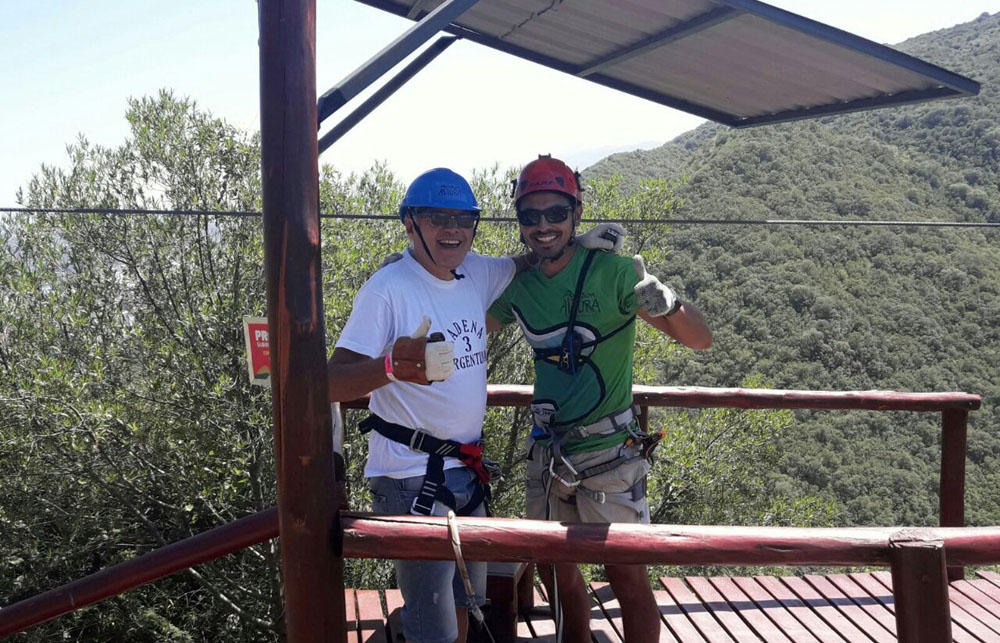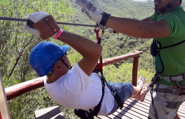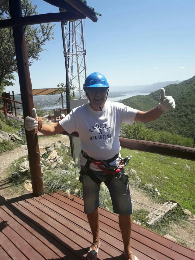 Orlando se animó a la tirolesa en la aerosilla de Carlos Paz