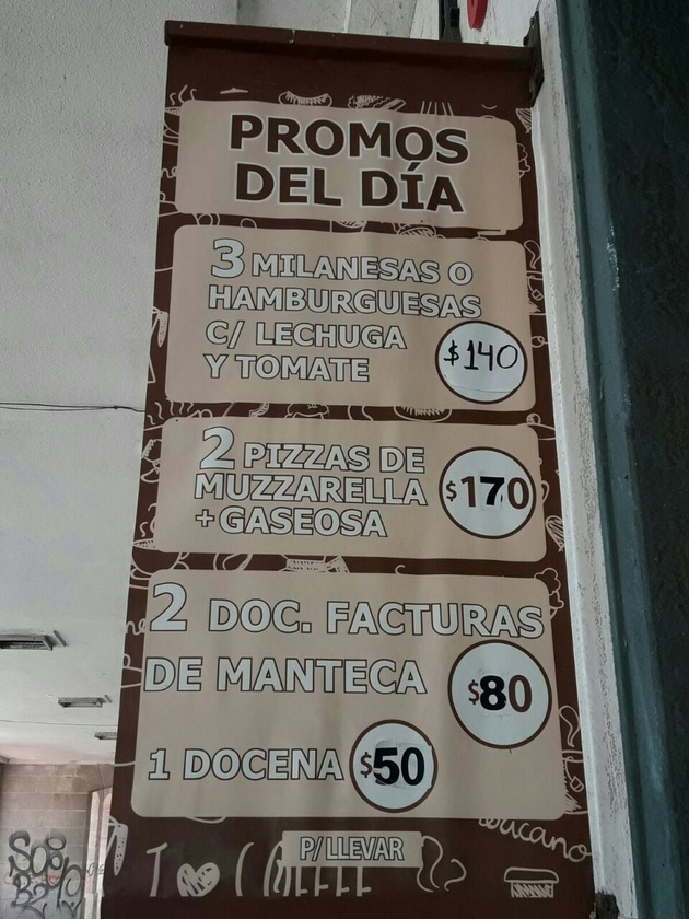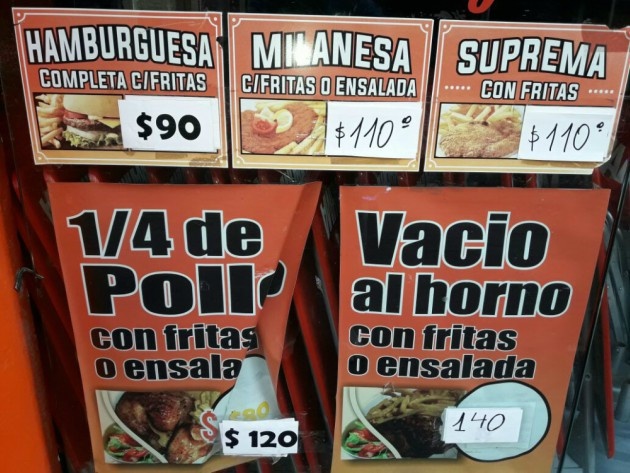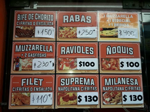 Así, se puede llevar un pollo con papas fritas por $100, fideos con frutos de mar a $140, promociones de dos choripanes con papas fritas a $100, dos milanesas a la napolitana con fritas a $200 o una pizza con media docena de empanadas a $220.