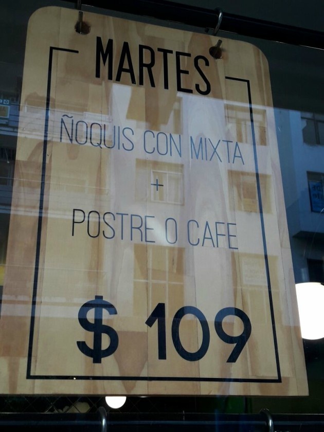 En tanto que en la peatonal se puede comer un plato con ravioles más postre y café a $115, uno de ñoquis con postre a $109, una costeleta con puré a $130.
