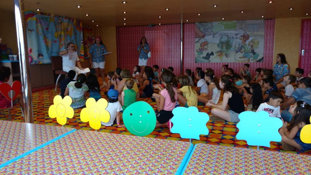Los pasajeros más pequeños del crucero tienen diversión garantizada en el piso 11 del barco, con disfraces, juegos y hasta una charla con el capitán.