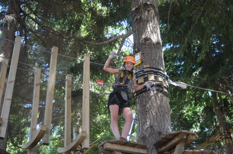 "Es super seguro por el sistema de seguridad. El visitante siempre está equipado con arnés, casco y guantes. Este sistema consiste en un cable que nos conecta desde el principio al final del nivel. Algún tropezón, quedamos colgados como si fuera una hamaca".