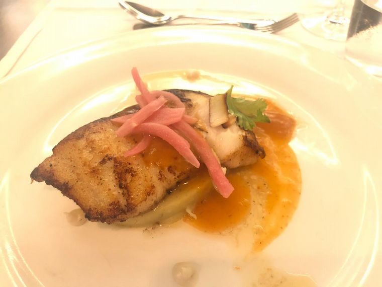 De plato principal, filete de mero al coco con yuca en texturas. Por último, de postre probó la Tarta Banof: una crema de café con helado.
