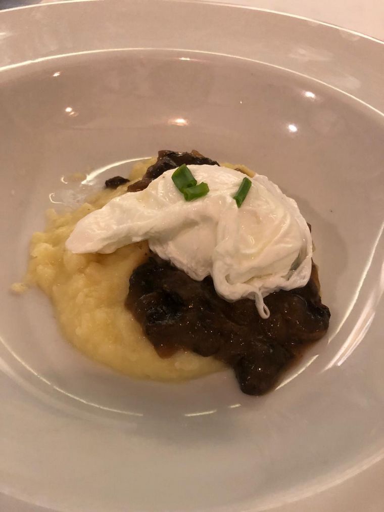 De entrada, eligió huevo poché con ragú de setas y cremoso de papa con aceite de trufa.