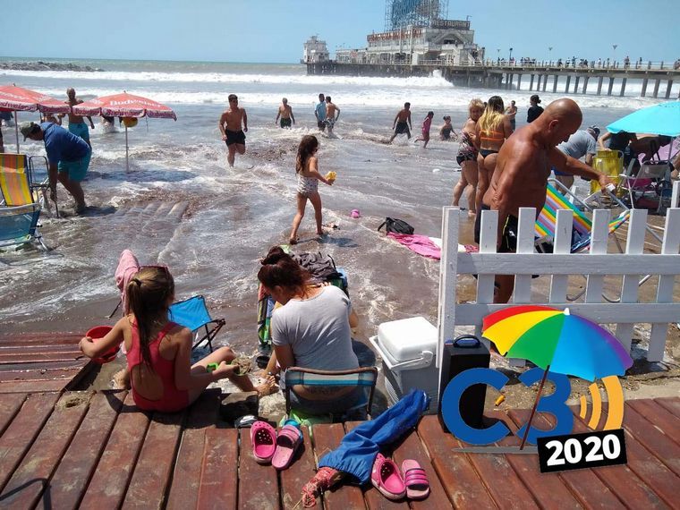 La marea alta consumió parte de la playa en Mar del Plata