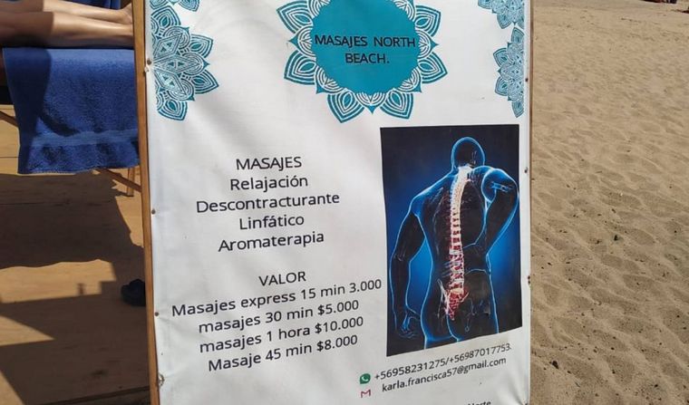La periodista de Cadena 3 en Chile, Angie Gatica, disfrutó de una sesión de masajes a la orilla del Oceáno Pacífico, en la Playa Los Cañones de Viña del Mar.