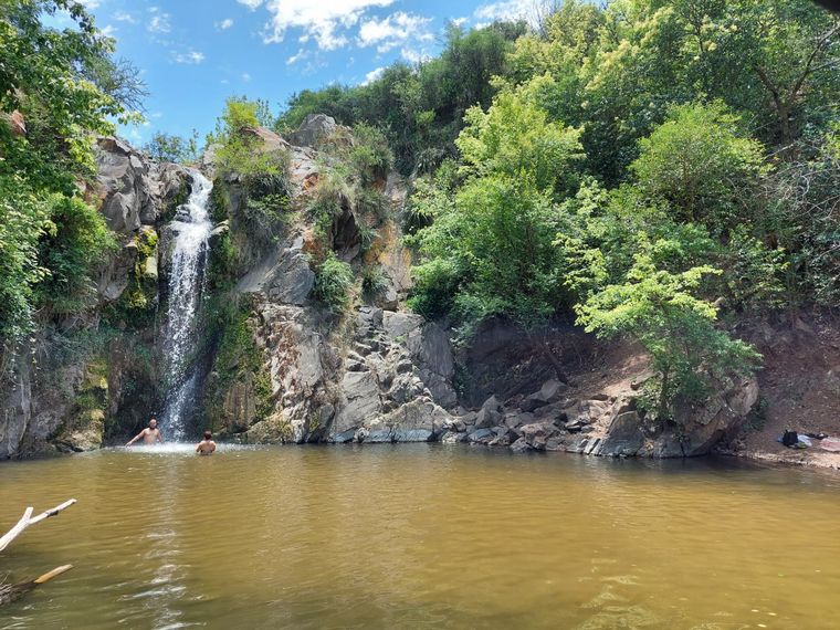Se trata del salto de La Estancita, una cascada de 13 metros de altura que desemboca en una olla natural con una profundidad de 1,5 metros, ideal para que puedan nadar hasta los más chicos.