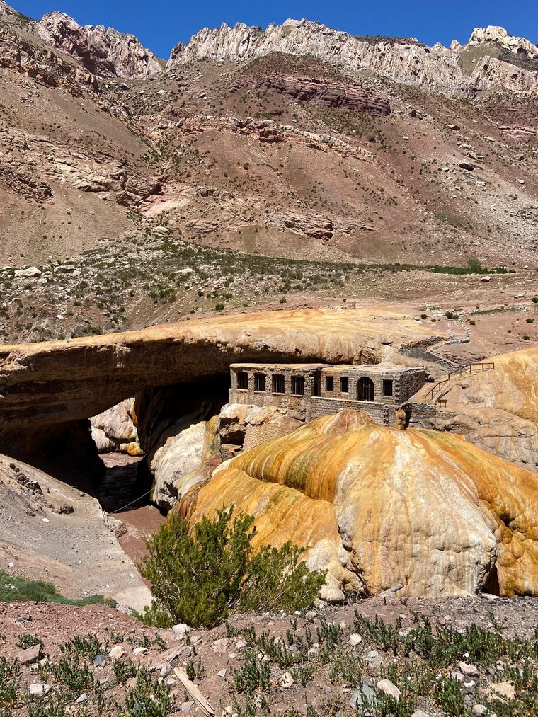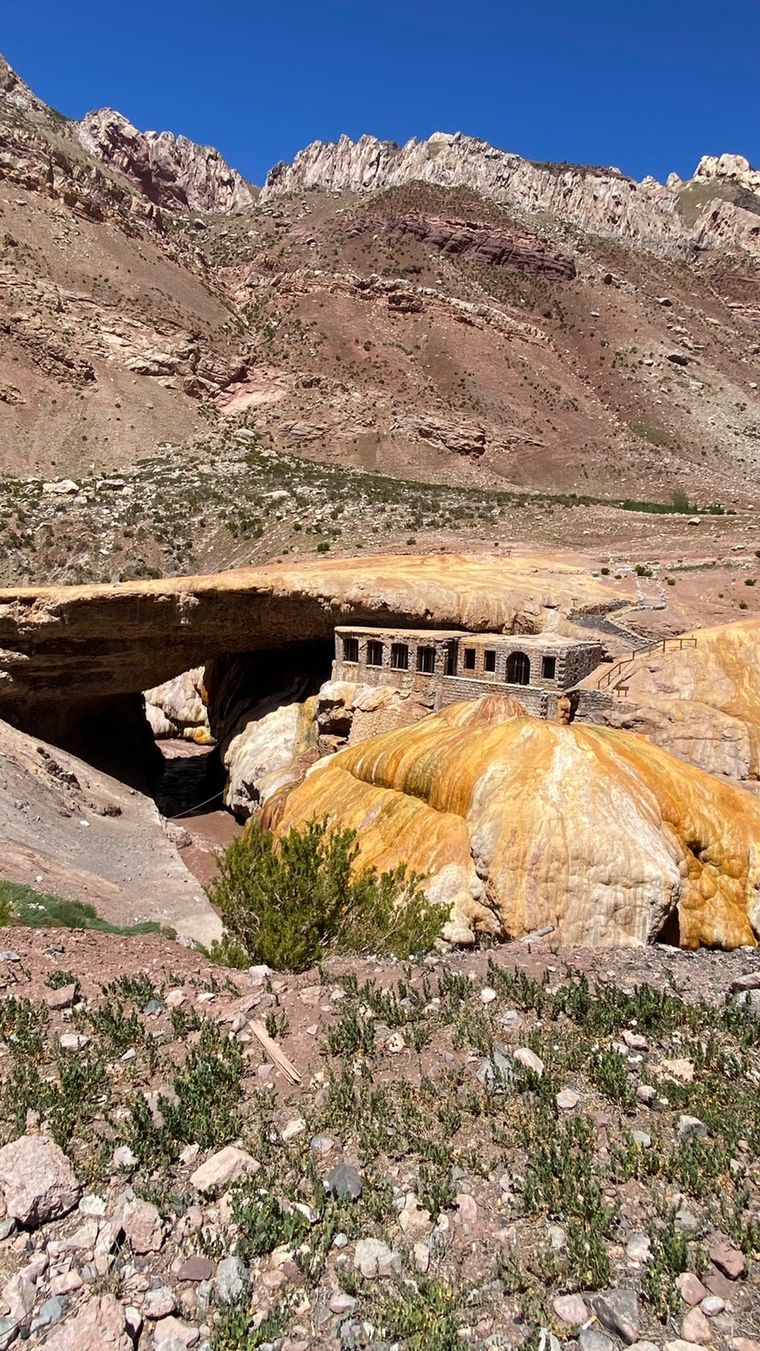 Se trata del Puente del Inca, que se formó naturalmente sobre el Río Cuevas. Se destacan las aguas termales, cuyos minerales le dan al lugar la coloración tan característica.