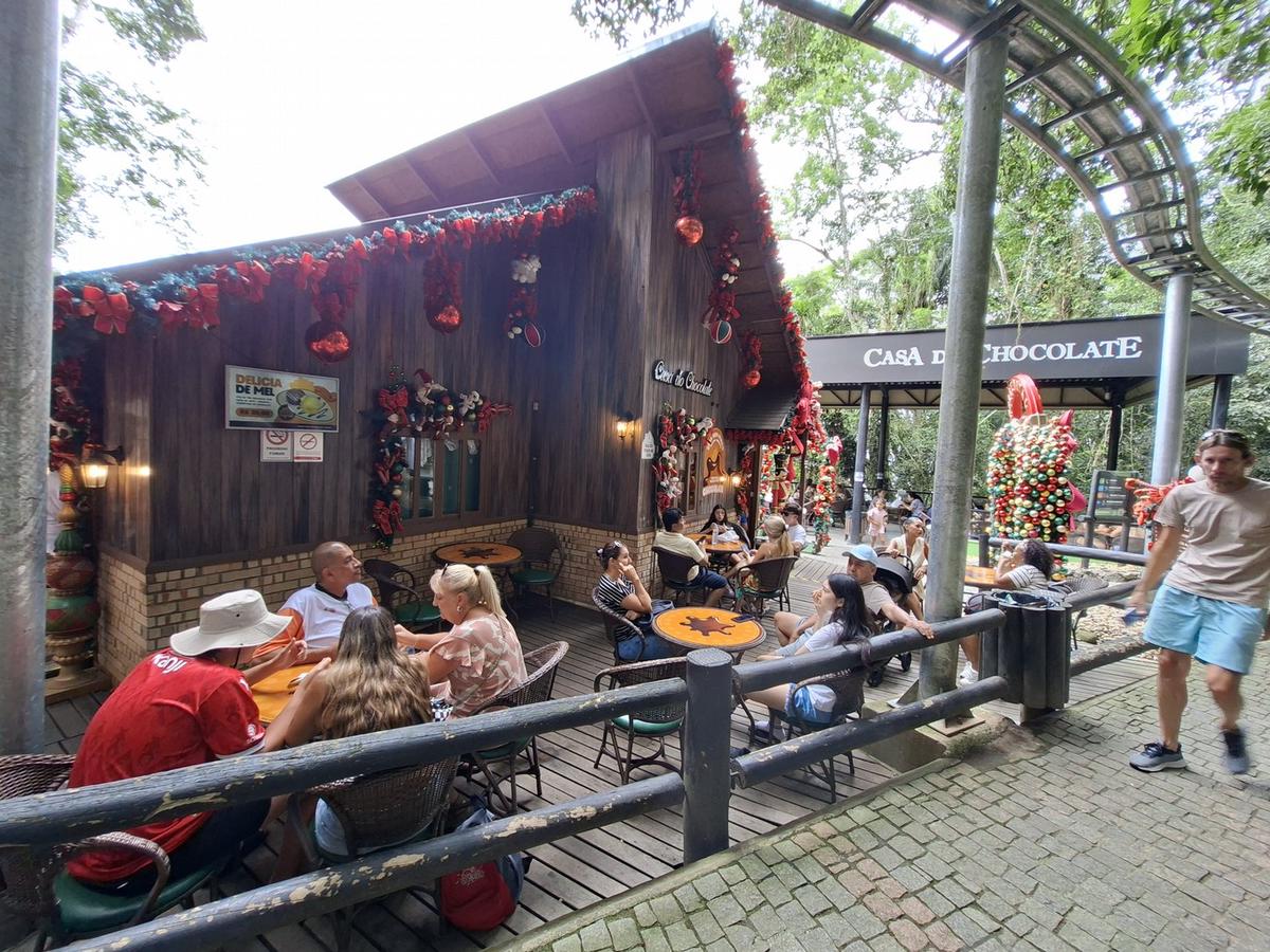 Y el cierre dulce: la Casa do Chocolate, una casa de madera en la base central del teleférico, con olor irresistible al entrar. Ofrece todo tipo de chocolates artesanales, barras, licores, chocolate caliente cremoso y opción para tomar té bajo las copas de los árboles.