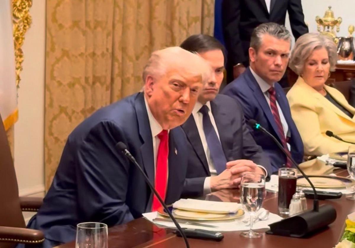 Los nombres de los participantes, impresos al lado de cada plato. La porcelana con borde dorado. El menú: ensalada cítrica, carne asada, postre de vainilla. Todos con vaso de agua. Todos menos Trump, que tenía uno de Coca-Cola. Ese detalle —mínimo, doméstico— decía más que muchos discursos: en el corazón del poder global, el hombre más observado del planeta insistía en su costumbre más plebeya. Como si la Coca-Cola fuera, también, una bandera.