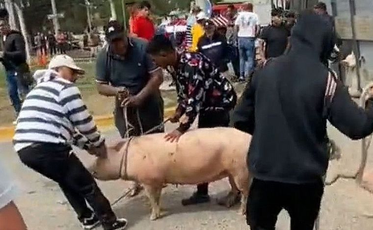 - Es más, hay una de las imágenes de una persona que le ata una soga y se lo lleva como quien pasea un perro. Pero en este caso se ve que el chancho que se resiste. Imágenes que parecen de película.