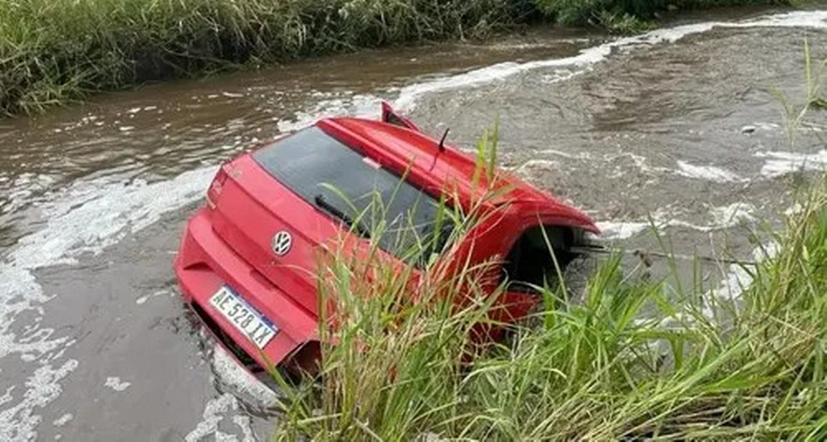 Un Volkswagen Gol Trend cayó en un canal de riego. Dos supervivientes están internados con heridas graves.
