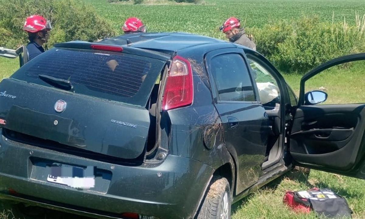 Efectivos del Duarte Capital trabajan en la ruta 36 camino a Bouwer, al kilómetro 802, tras un accidente de tránsito ocurrido en dicho lugar. Un hombre de 63 años, a bordo de un vehículo Fiat Punto, despistó y rodó con su vehículo sobre la banquina.
