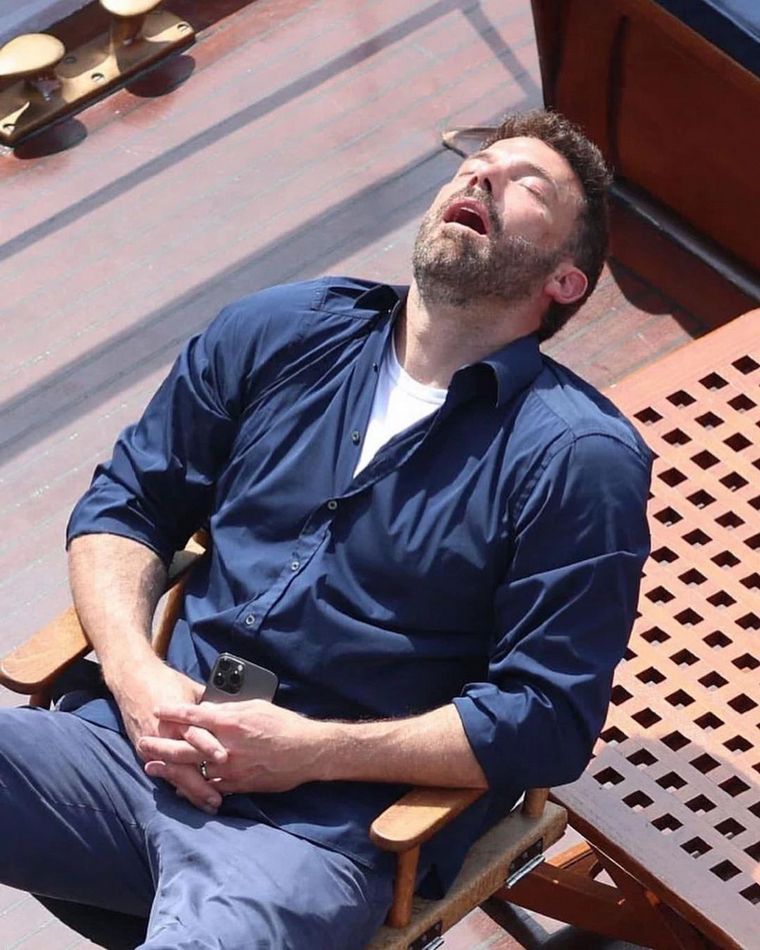 Las fotos de un paseo de los dos en un lujoso bote por el río Sena mostraron a Affleck completamente dormido, algo que se replicó rápidamente en las redes sociales.
