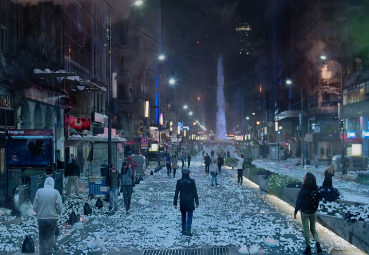 "Granizo" recreó una impactante precipitación en Buenos Aires.