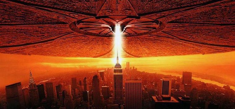 Esta última posibilidad es la campea en “Día de la Independencia" de Roland Emmerich, en el que una nave alienígena llega a la tierra y, aunque es difícil de creer, el gobierno de los Estados Unidos confía, con toda inocencia, que vienen en son de paz. El resto de la película está destinado a sacarlo de esa convicción y a armar el contrataque que, por supuesto, es letal.