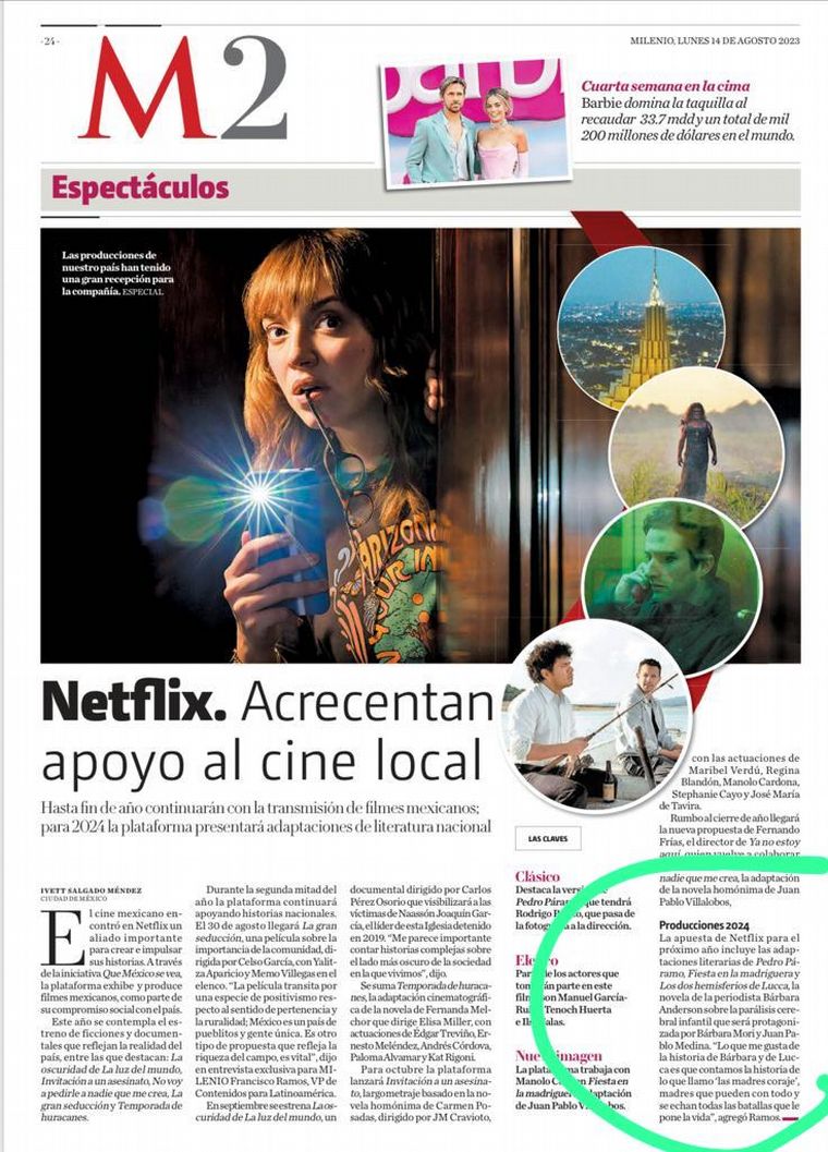 “Nuestra estrategia continúa evolucionando, centrándose en encontrar y contar historias únicas con puntos de vista sólidos”, dijo Francisco Ramos, vicepresidente de contenido para América Latina, y agregó: “Tenemos una estrategia de director primero que respalda su visión de la película que hemos acordado hacer juntos”.