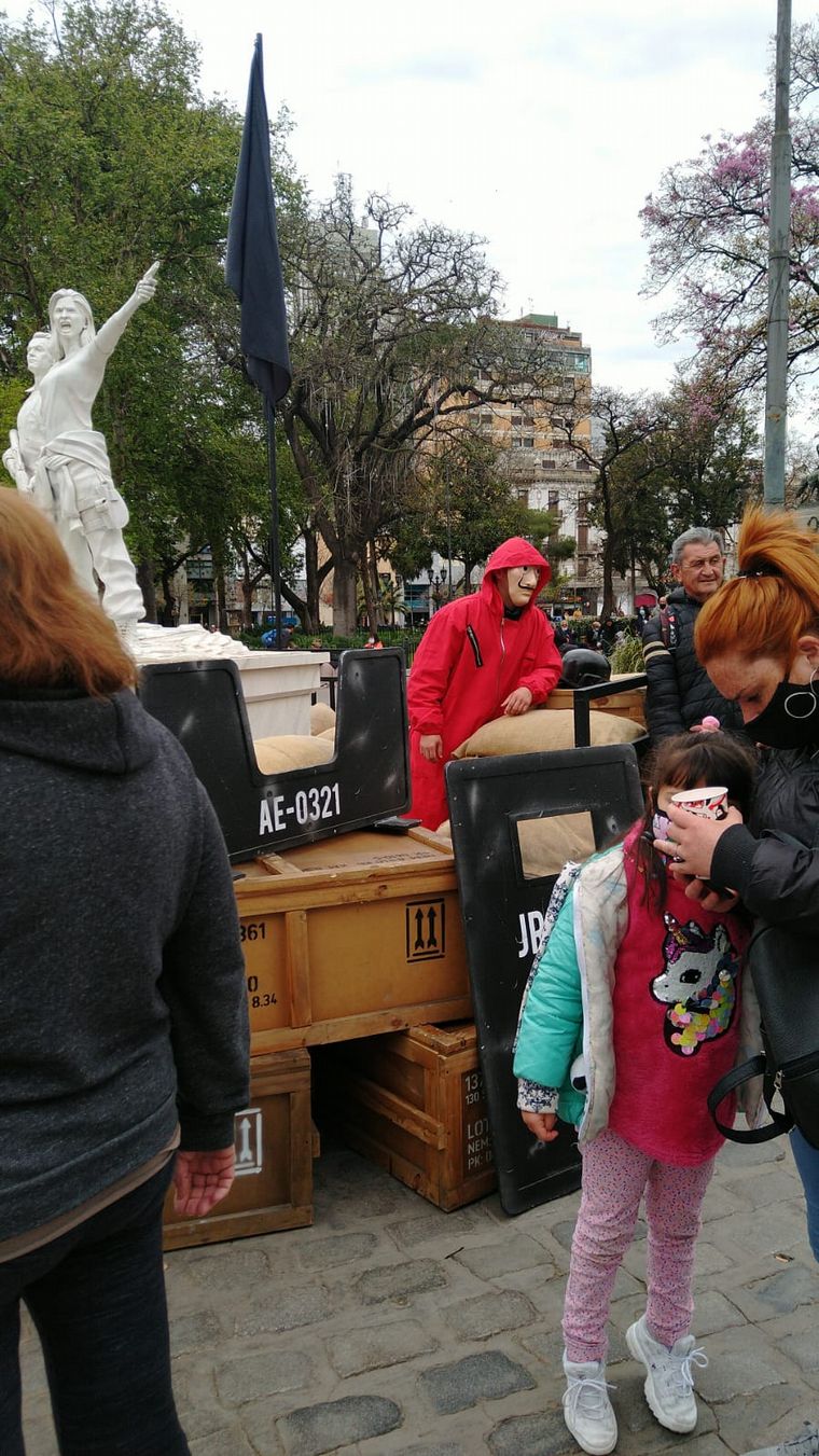 Las estatuas fueron ubicadas en la Plaza San Martín, en el corazón céntrico de la capital cordobesa, donde muchos transeúntes aprovecharon para acercarse a mirar y sacarse fotos.