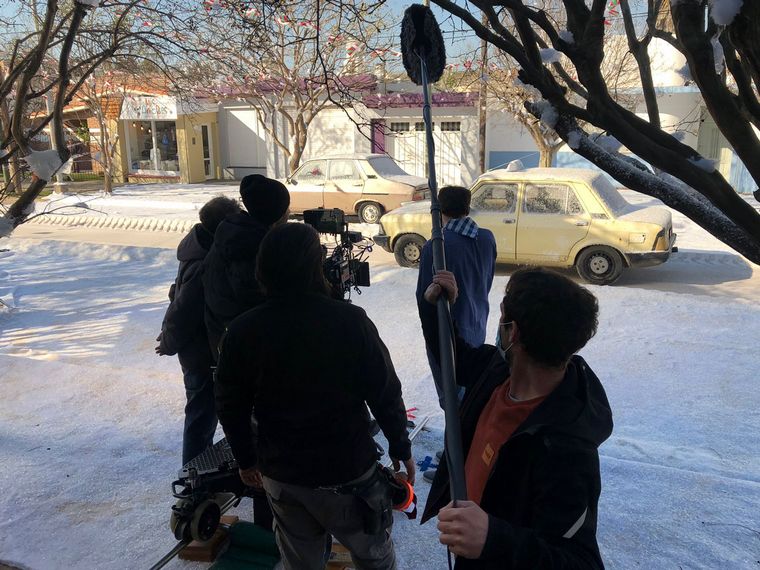 La escena se hizo con un equipo de efectos especiales de Buenos Aires: la nieve se simula con una mezcla de sal (se utilizaron dos toneladas) y microcelulosa.