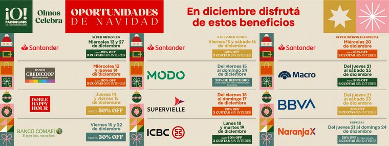 El jueves 14 y el viernes 15 de diciembre el Patio Olmos ofrece una promo navideña espectacular: ¡Hasta el 50% de descuento en más de 70 marcas adheridas!