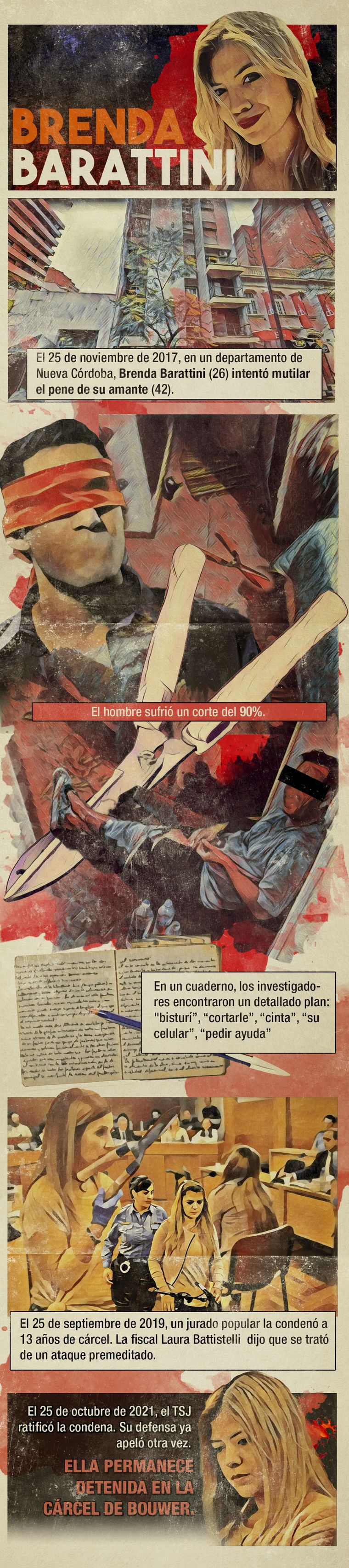 Hace más de 1.600 días que Brenda Barattini ve pasar la vida a través de una ventana enrejada de la cárcel para mujeres ubicada en el complejo penitenciario de Bouwer. La joven que está por cumplir 30 años, fue detenida en la madrugada del 25 de noviembre de 2017 tras intentar mutilar el pene de quien era su amante, un hombre de entones 42 años.