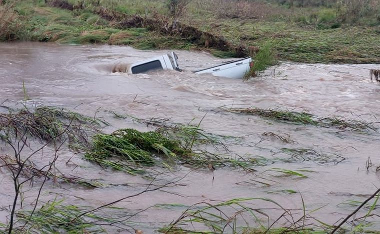 Anteayer, un productor agropecuario, Javier Vignole, circulaba por la zona, bajo la lluvia, para buscar a su hija y otros compañeros que están pupilos en una escuela agrotécnica. No le quedó otra que cruzar un canal en el que nunca se hicieron obras para poder cruzarlo sin riesgos. Su camioneta fue arrastrada. Lo encontraron dos días después. Su camioneta enterrada en barro.
