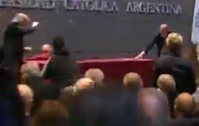Al grito de "ladrón vendepatria", dos jóvenes irrumpieron en el auditorio San Agustín de la Universidad Católica de Puerto Madero. Los agresores fueron reducidos por Prefectura.Mirá el video.