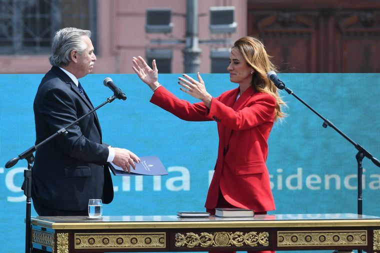 Durante el acto, el mandatario destacó que se suman "tres mujeres valiosas y fervientes militantes al gabinete que deberán seguir adelante la tarea de quienes le precedieron", al tiempo que el mandatario agradeció a los ministros salientes Juan Zabaleta, Claudio Moroni y Elizabeth Gómez Alcorta.