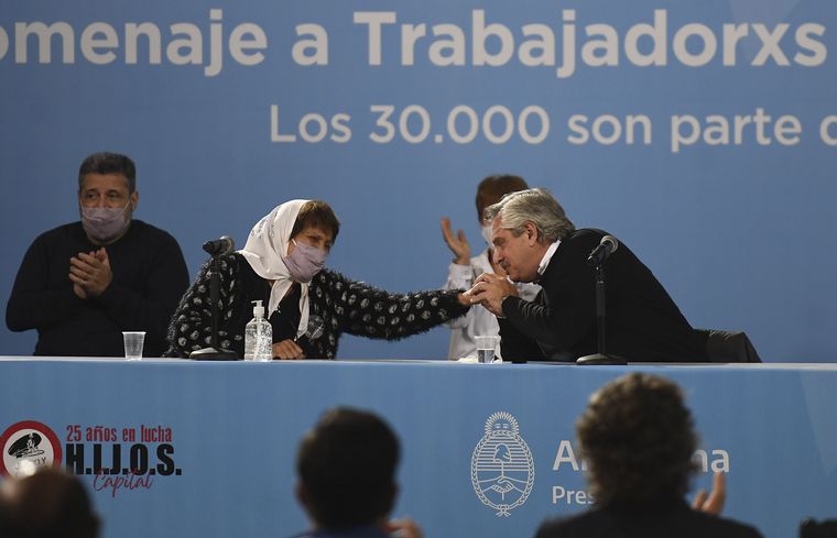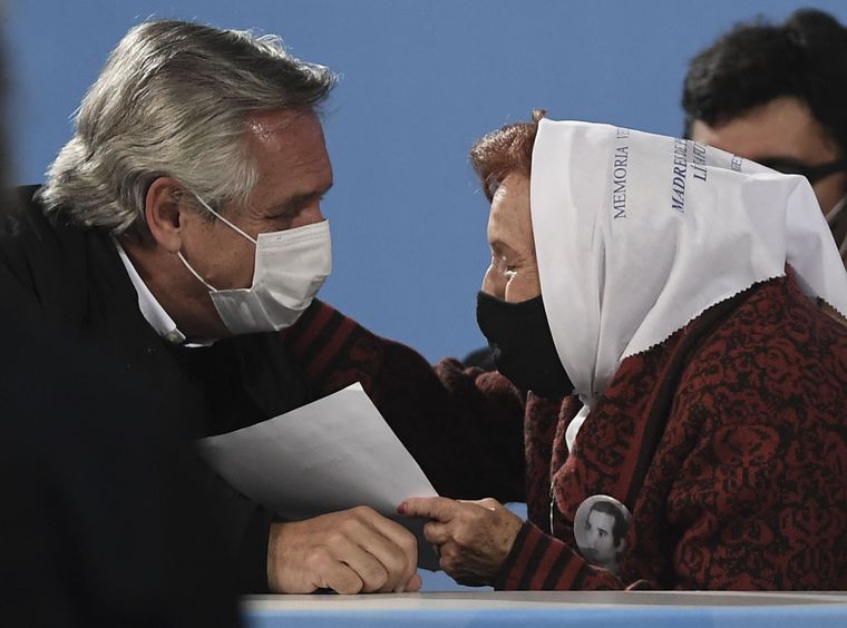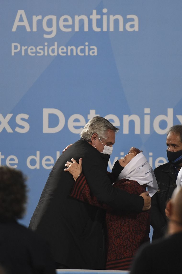 Por su parte, Taty Almeida, de Madres de Plaza de Mayo Línea Fundadora, destacó la presencia del Presidente, valoró a "los jóvenes y la militancia política" y, en referencia a la manifestación en Plaza de Mayo que incluyó bolsas mortuorias, agregó: "Ellos van a seguir mostrando odio, como lo que hicieron con esos bolsones, deplorable".
