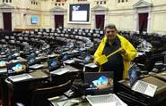 El diputado salteño Alfredo Olmedo cumplió con su compromiso y se presentó temprano con una pala al nuevo intento de la oposición por conseguir quórum para tratar diversos proyectos, entre ellos, el congelamiento de las tarifas.