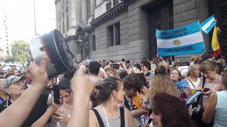 Con banderas argentinas y cánticos contra la ex mandataria y actual vicepresidenta, Cristina Fernández, los manifestantes protestaron sobre la avenida Rivadavia, entre los edificios del Congreso y del Anexo de Diputados.