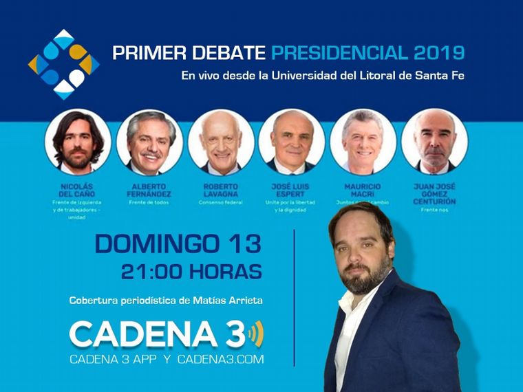 Cadena3.com transmitirá el primer debate presidencial que se llevará a cabo el domingo 13 de octubre en el Paraninfo de la Universidad Nacional del Litoral de Santa Fe, de cara a las elecciones generales del 27 de octubre.