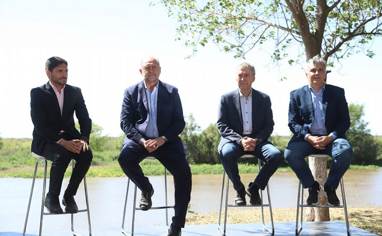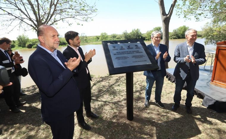 El mandatario dijo que el acueducto es una muestra de políticas de Estado porque el proyecto se inició en las gestiones de Miguel Lifschitz y suya, y que la presencia de Pullaro y Llaryora "significa la ratificación de la concreción de esta obra y del trabajo conjunto", más allá "del signo político que tengan".