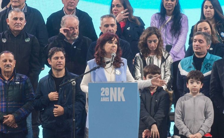 Acompañada en el escenario por funcionarios, legisladores y dirigentes del oficialismo y por sus nietos, quienes se mostraron con ella por primera vez en un acto político, la exmandataria propuso "tres ejes" para la etapa que viene, aunque se privó de designar precandidatos para las elecciones.
